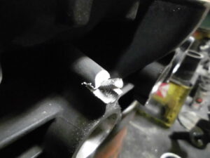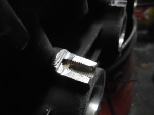 これだけ折れたらまぐれでも1発ぐらいは綺麗に修理できそうですが古いボルトが残ったまま中途半端なタップをたててマニーホールドのボルトを押し込んているので大惨事・・・・